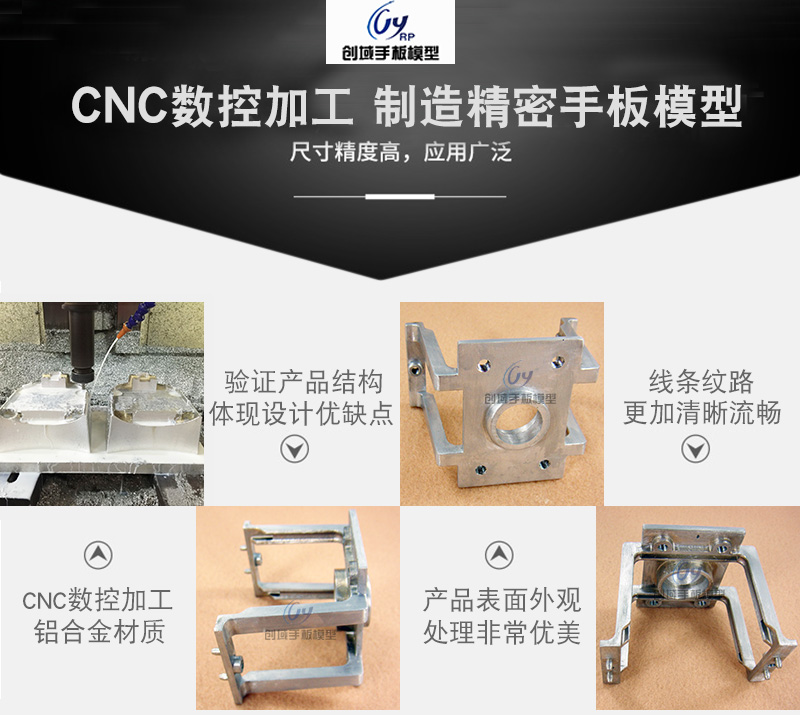 創域手板模型擁有高精密CNC電腦鑼,采用ABS膠板﹑鋁合金﹑壓克力POM等材料,能為貴公司制造出結構精密﹑高強度﹑高韌性的手板模型。本公司可以制做家用電器類、玩具類、醫療器械類、消費類電子、通信類、數碼產品類、工具類手板模型等。